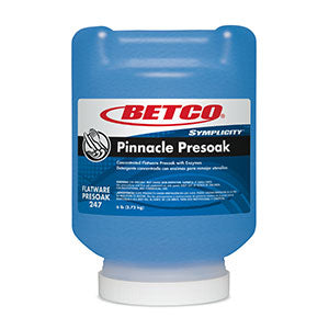 Solid dual enzyme activated presoak quickly solubilizes and suspends food soils for sparkling onepass clean and a more efficient dishroom operation. Premium formula combines mild alkalines, low foaming surfactants, and a proprietary blend of soil targeted fast acting enzymes which rapidly penetrate difficult food service soils 100% active and extremely economical. Effective detarnisher will not harm sterling silver or other soft metalware when used as directed. Lowfoaming low VOC formulation contains no APE, NPE, and ETDA