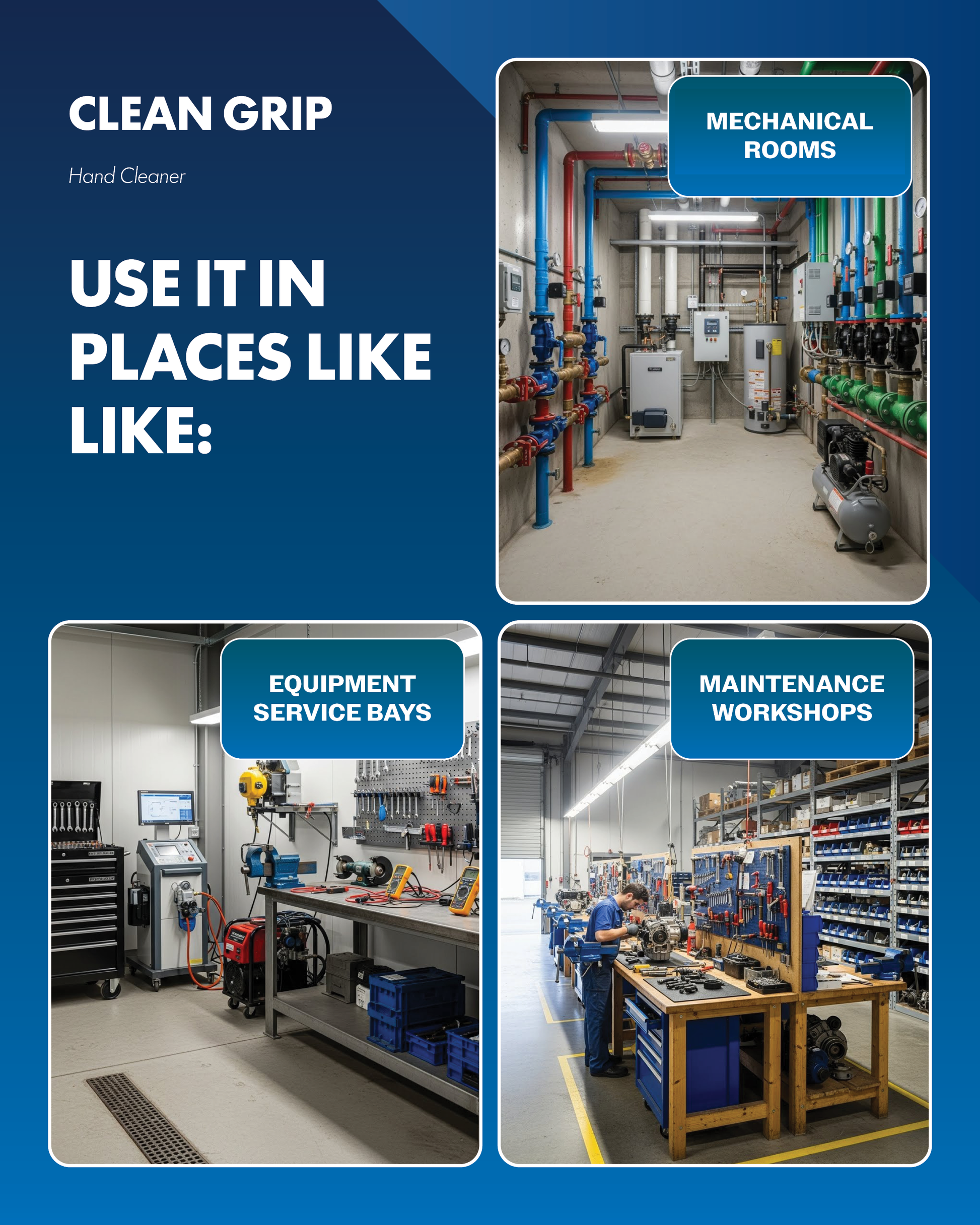 Clean Grip is an advanced hand cleaner designed to remove tough soils, grease, and grime while remaining gentle on skin. Formulated with natural walnut shell scrubbers and rich moisturizing oils, it delivers powerful cleaning performance without harsh abrasives. Ideal for industrial, automotive, and maintenance environments, Clean Grip leaves hands clean, smooth, and refreshed after every use.