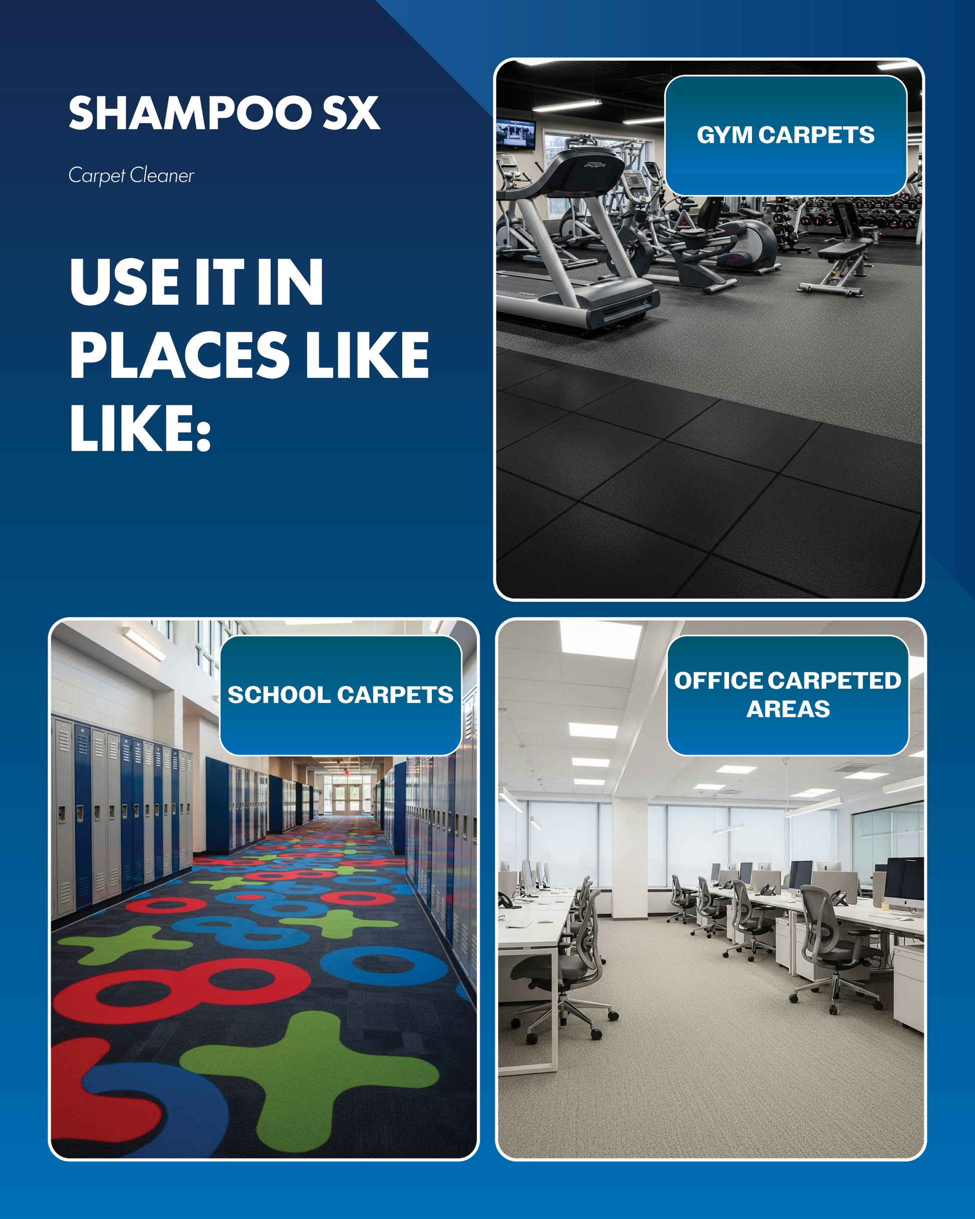 Used as directed, Shampoo SX delivers powerful cleaning action for professional carpet and upholstery maintenance programs. Always follow label directions and SDS guidance for safe dilution, application, personal protection, and disposal.